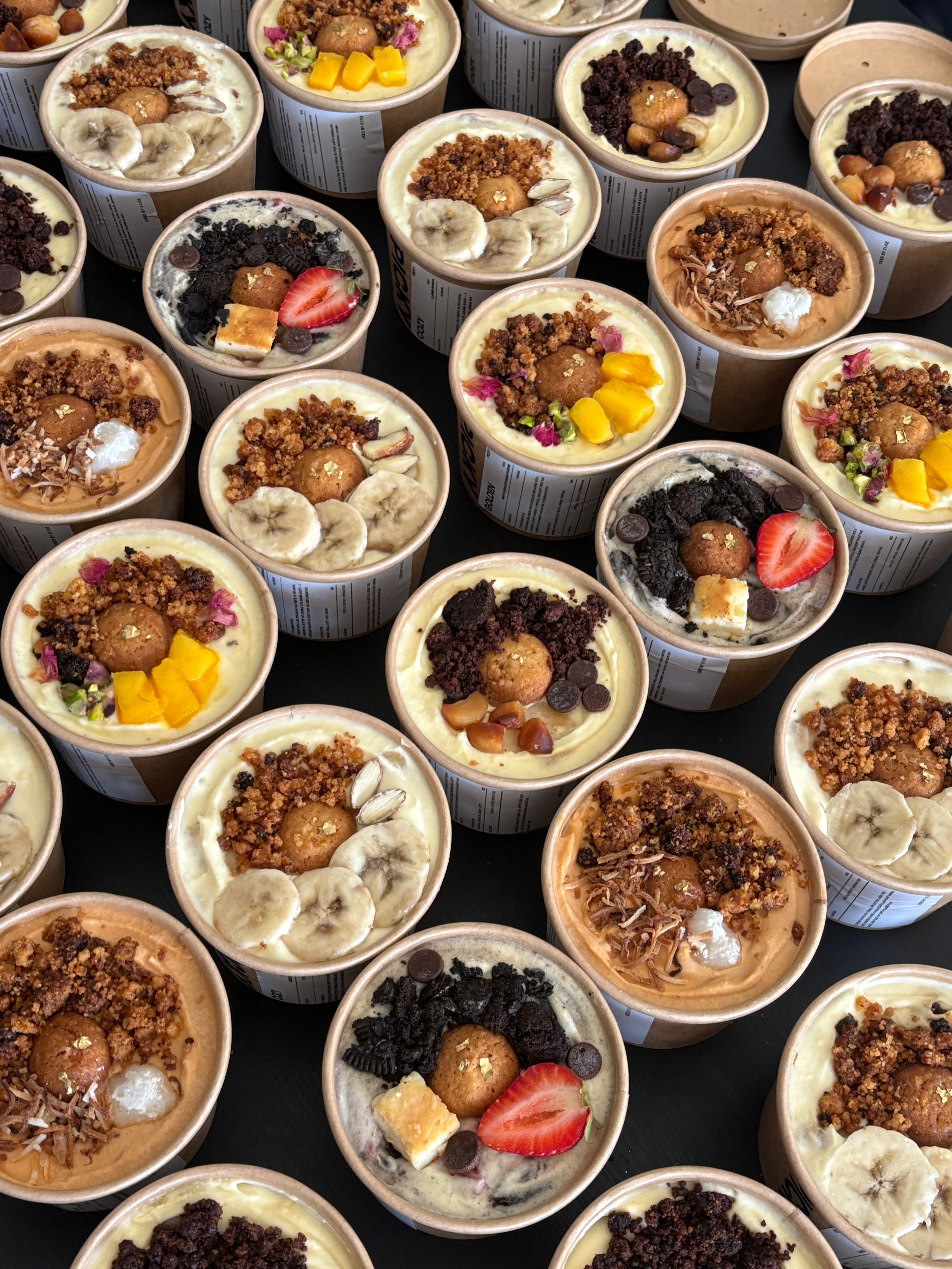 We offer handcrafted chilled NYC-style puddings, featuring rich vanilla cream layered with buttery biscuits, paired with seasonal fruits and toppings.